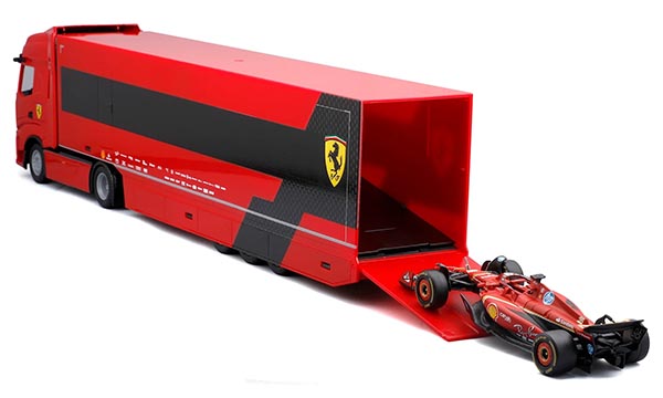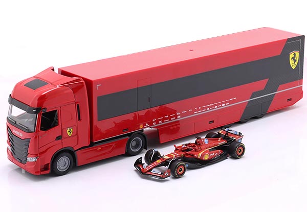 Модель 1:43 Трейлер команды Ferrari - Iveco S-Way 570 с болидом Ferrari SF-24 Шарля Леклера, 2024 год.