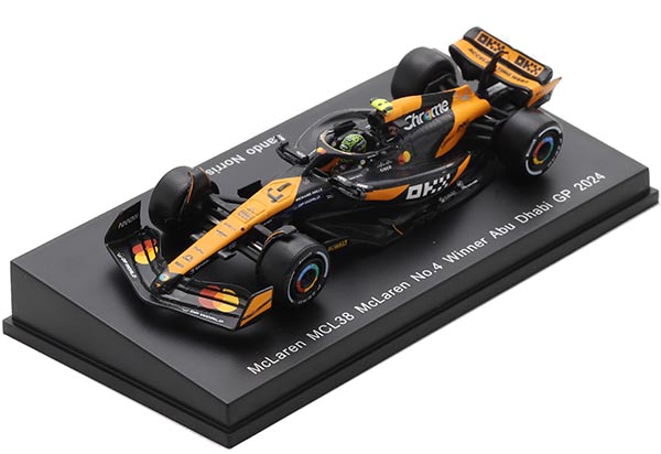 Модель в масштабе 1:64 McLaren Mercedes MCL38. Ландо Норрис, победитель Гран-При Абу-Даби 2024 года.